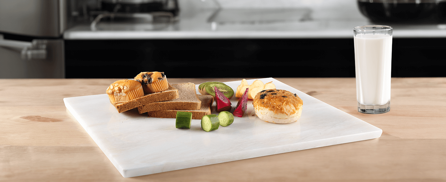 KITCHEN ESSENTIAL: The unique marble cutting board serves as a highlight in your kitchen. Exquisite marble patterns and natural material elevate your kitchen into a stylish culinary space. While its non-slip feet securely hold the board in place during prep, helping to guard against injury, its convenient non-stick surface allows for the easy rolling of dough, pastries, and fondant with a minimal amount of flour. It's even great for chocolate tempering and serving cheese!