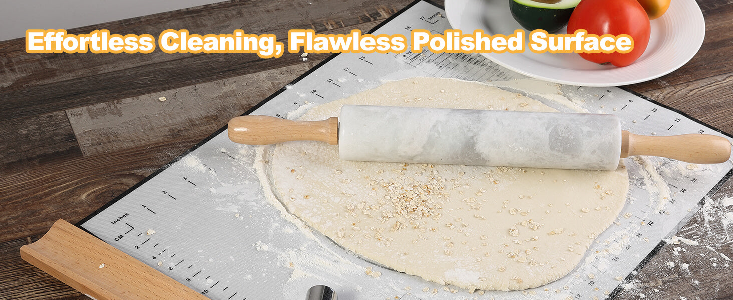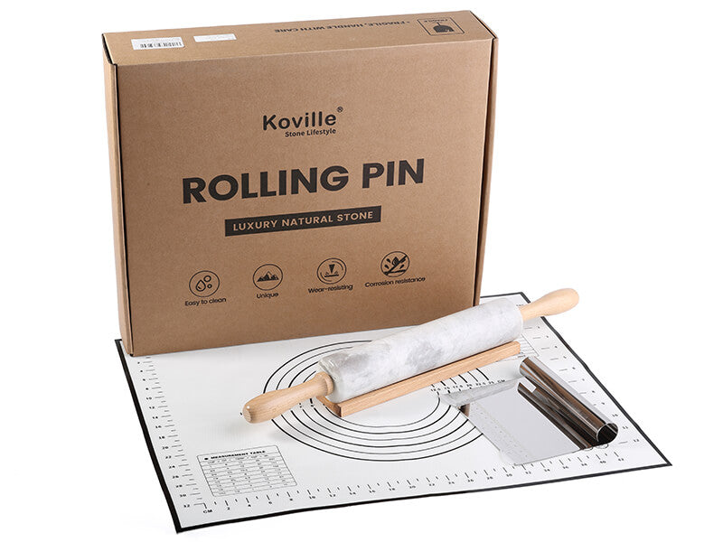 Complete Set: Practicality at Its Finest! Includes Scraper and Dough Mat. Experience ultimate convenience with our all-inclusive marble rolling pin set! This comprehensive set ensures that you have everything you need for baking and cooking.