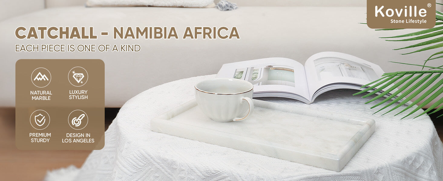 LUXURY AFRICA MARBLE TRAY: Koville marble tray comes from the distant and mysterious African continent - Walvis Bay, Namibia: the ancient mystery of the red desert, the blue sea of the quiet and distant, making it more attractive. Koville's passion for natural stone drives us to provide you with luxurious and stylish stone products.