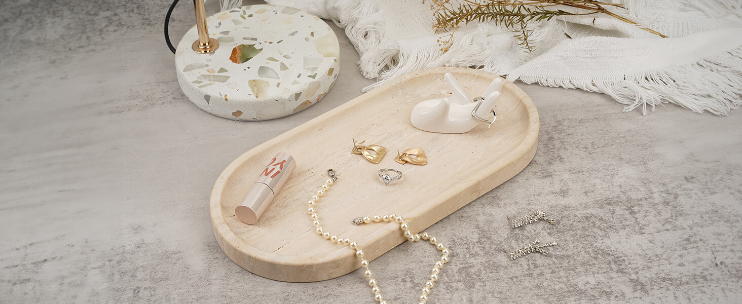 Versatile Applications: Our decor tray has a wide range of uses, such as jewelry holders or decorative accents, adding a touch of elegance to any space. Its versatility makes them suitable for various settings, such as bedrooms, bathrooms, living rooms, and offices.