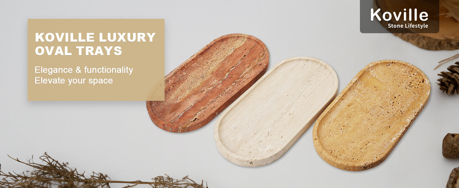 Meticulously hand-polished by skilled craftsmen, our travertine oval tray embodies the unique charm of the stone's natural pores.
