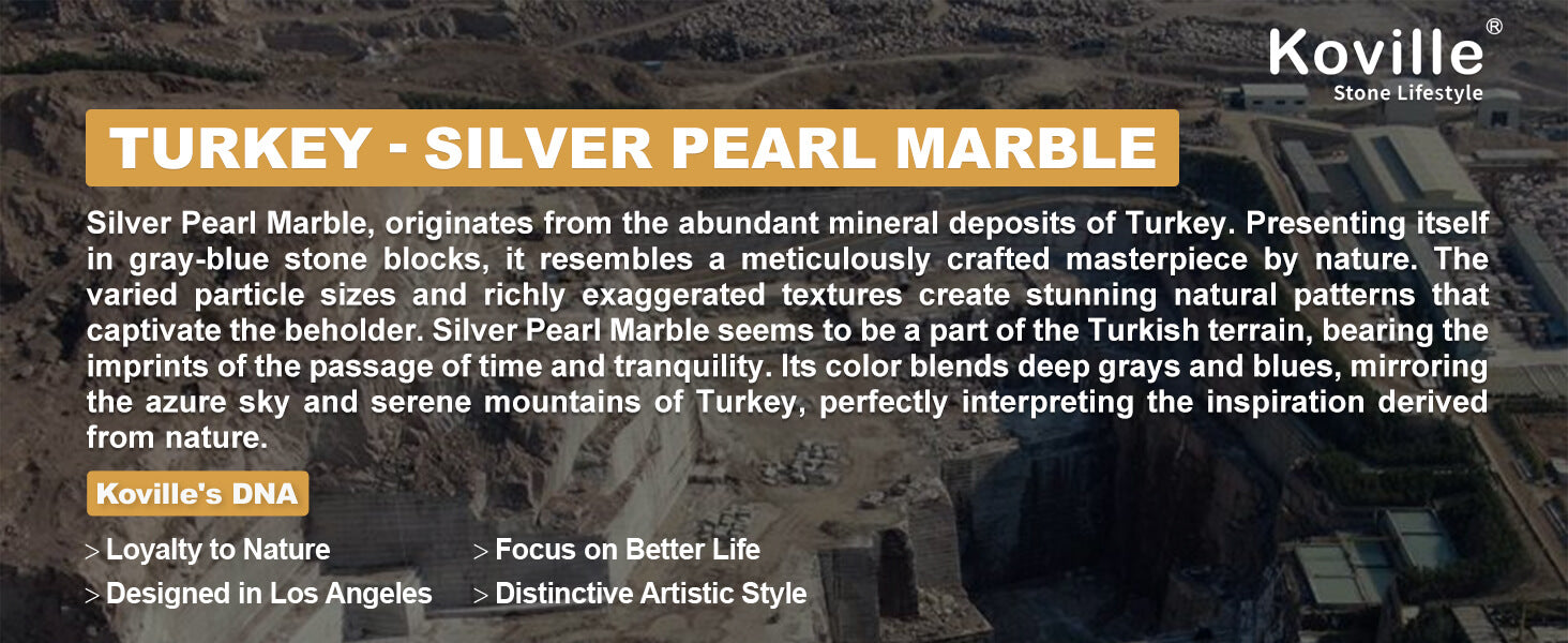 Italian Natural Travertine: Silver Pearl Travertine, originates from the abundant mineral deposits of Turkey. Presenting itself in gray-blue stone blocks, it resembles a meticulously crafted masterpiece by nature. The varied particle sizes and richly exaggerated textures create stunning natural patterns that captivate the beholder. Its color blends deep grays and blues, mirroring the azure sky and serene mountains of Turkey, perfectly interpreting the inspiration derived from nature.