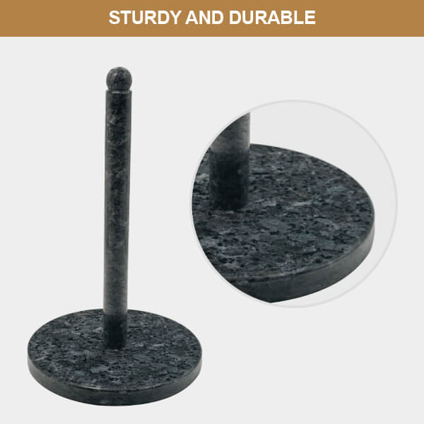 Koville high quality paper towel holder, made of heavy granite polished, smooth and delicate touch surface,granite base keeps the paper towel holder sturdy and won't tip over.