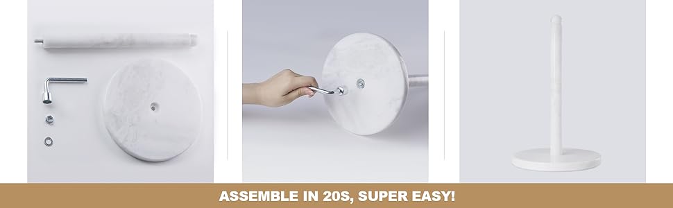 Each Piece is Unique: The base of the paper towel holder is composed of pure natural marble, Namib Fantasy. The stone natural pure texture, white and flawless, with rich white crystals , like glazed white jade. Because the distribution of natural stone crystals and veins are presented differently, so that each piece becomes unique.