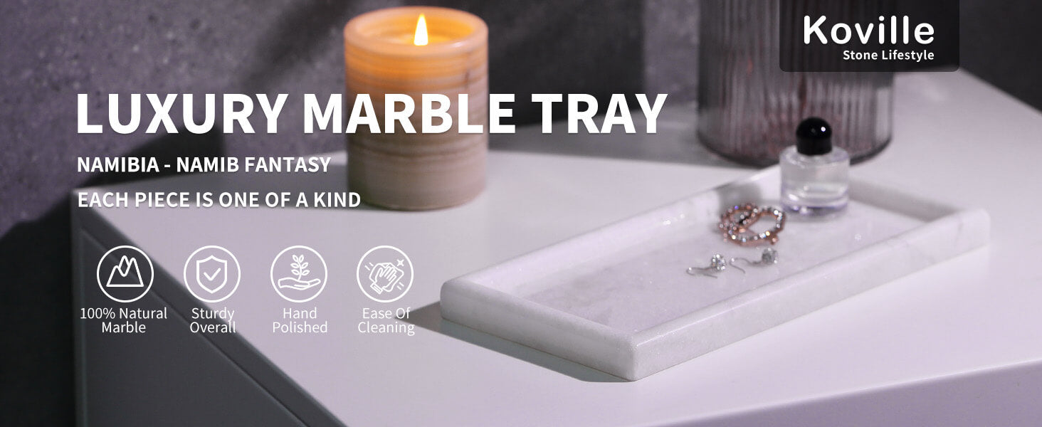 LUXURY AFRICA MARBLE TRAY: Koville marble tray comes from the distant and mysterious African continent - Walvis Bay, Namibia: the ancient mystery of the red desert, the blue sea of the quiet and distant, making it more attractive. Koville's passion for natural stone drives us to provide you with luxurious and stylish stone products.