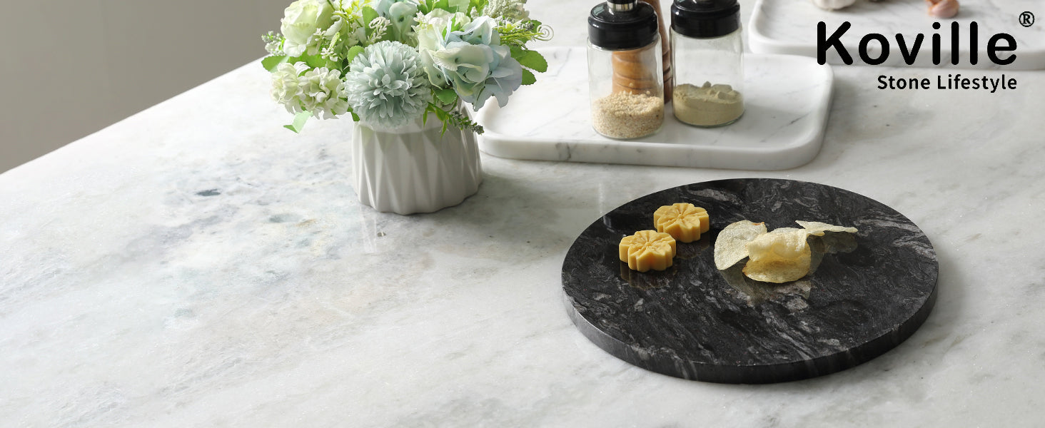 Every pastry board features distinct veining designs. This exclusive material not only brings an elegant flair to any environment, but also ensures that each tray is a unique creation.