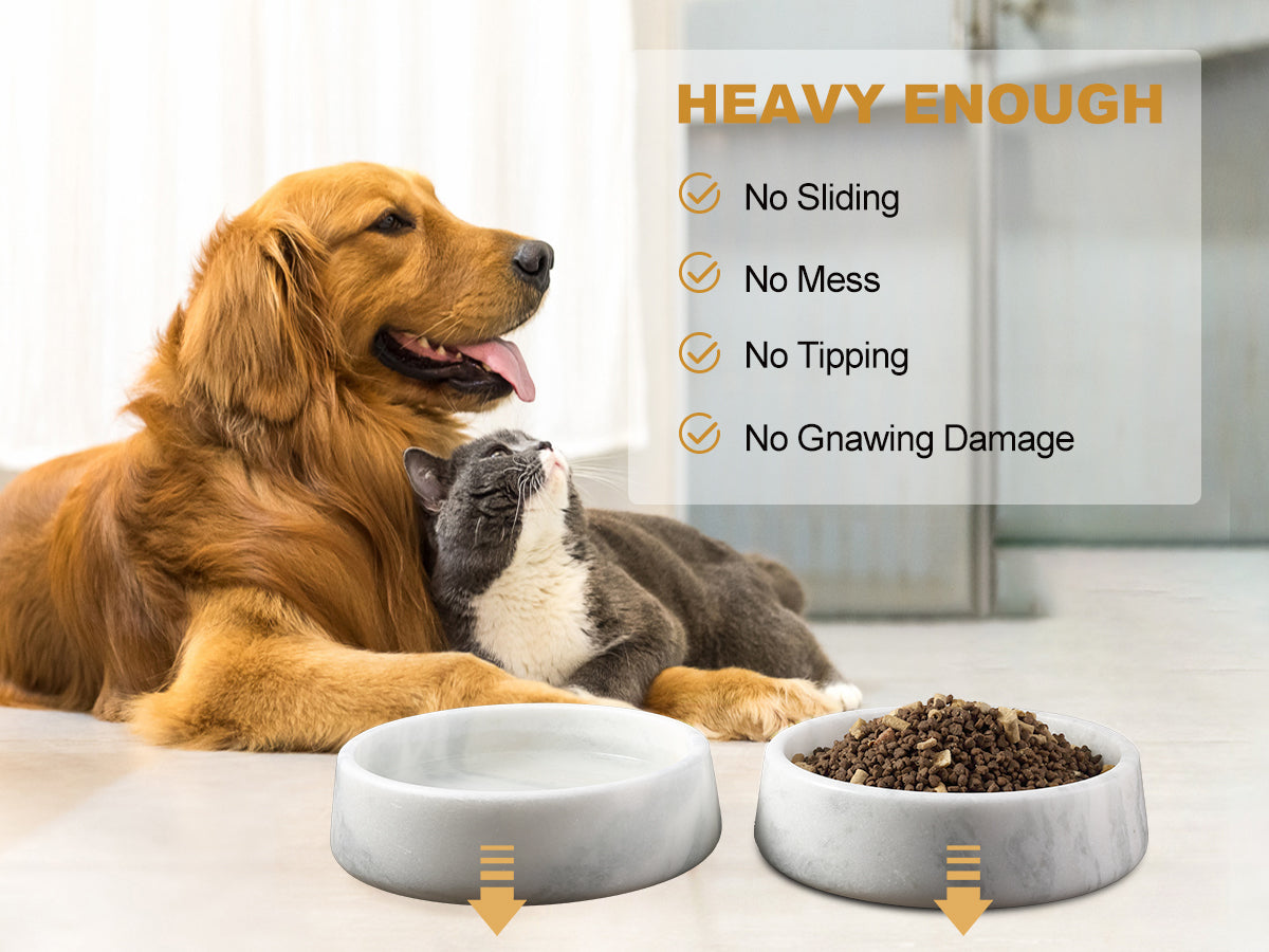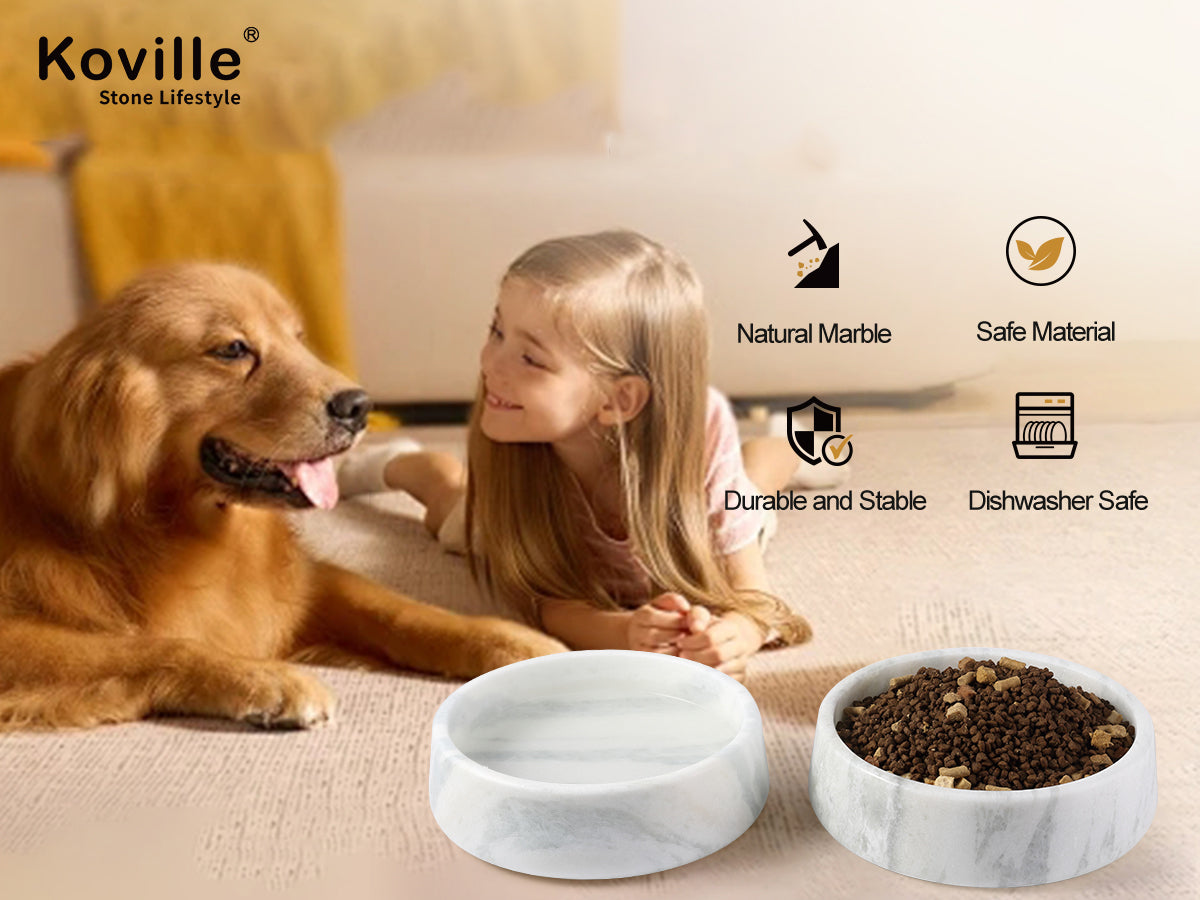Non-Slip and Stable Base: The Koville natural marble pet bowl is heavier and more durable than other plastic bowls, the heavy marble material ensuring that the bowl stays in place during mealtime. The added weight and grip prevent playful pets from easily moving the bowl, providing a stable and secure feeding experience for your pet.