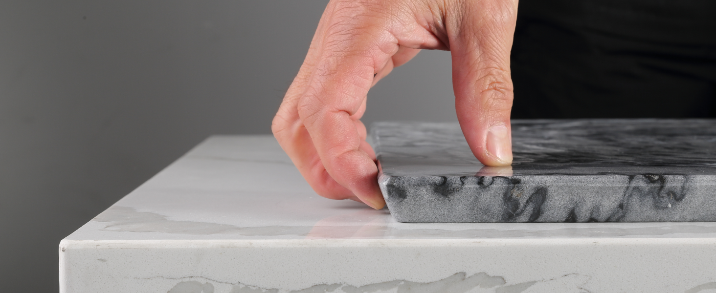 Innovative 15° Beveled Edge: The Koville natural pastry board features a polished 15° beveled edge, not only enhancing its aesthetic appeal but also making it incredibly practical. The beveled edges offer a comfortable grip, allowing for easy lifting and maneuvering of the board, whether you're moving it around the kitchen or using it for serving. It combines beauty with function in a truly innovative design.