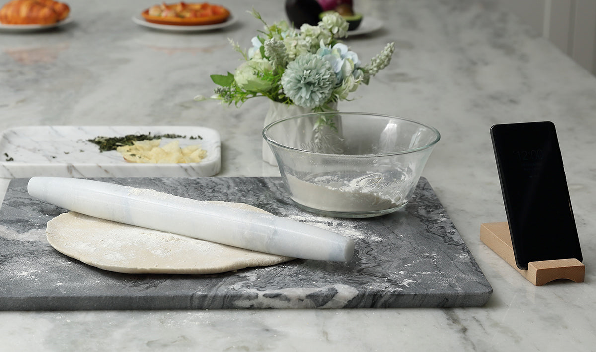 Functional Wooden Base Holder: The Koville natural marble rolling pin comes with a stylish wooden base holder, perfect for storing and preventing it from rolling off countertops. This base can also be used as a phone stand, allowing you to follow recipes or watch baking tutorials hands-free, making your baking experience even more convenient.