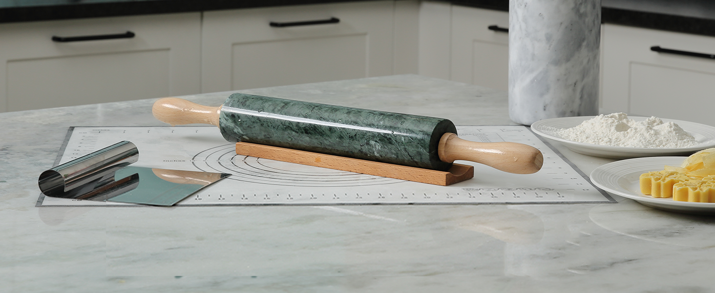 Koville Natural Marble Rolling Pin Scraper Dough Mat Set-Indian Green